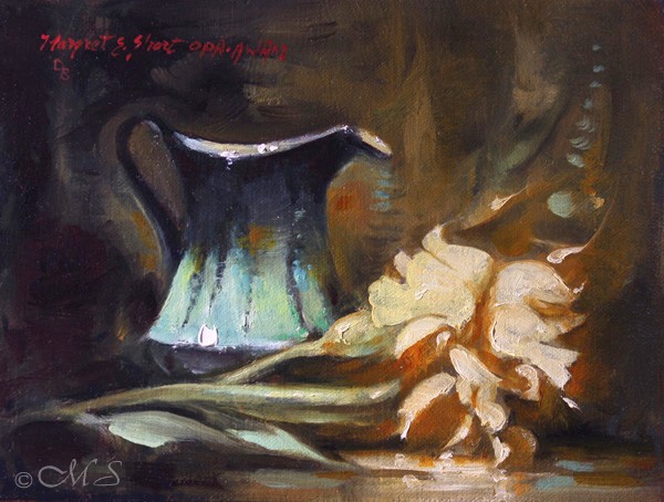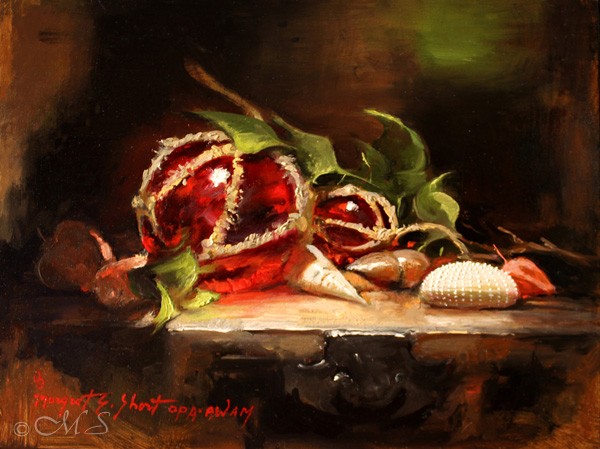 Portland, Oregon artist Margret Short - a modern day master of 17th Century Dutch art using the chiaroscuro technique to create still life and floral paintings.
